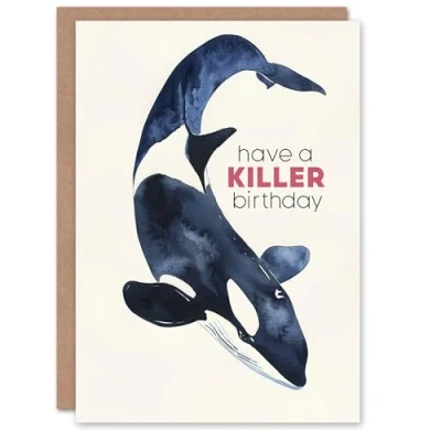 Artery8 Have A Killer Day Orca Whale Watercolour Blank For Him Or Her Art Birthday Card