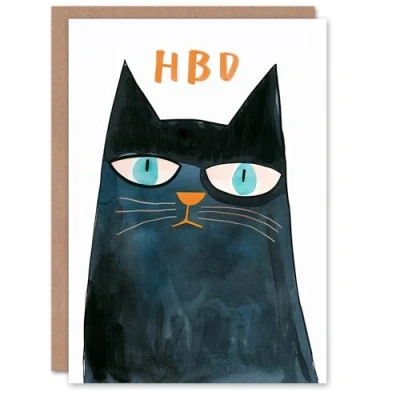 Artery8 HBD Blue Eyed Grumpy Cat Lover Watercolour Blank For Him Or Her Art Birthday Card
