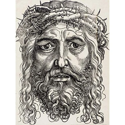 Artery8 Head Of Christ Crowned With Thorns Illustration Premium Wall Art Canvas Print 18X24 Inch