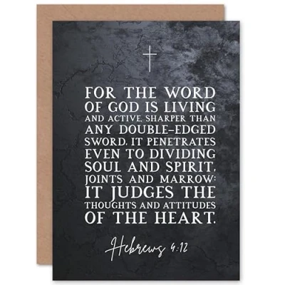 Artery8 Hebrews 4:12 The Word of God is Living and Active Christian Bible Verse Quote Scripture Typography Sealed Greeting Card Plus Envelope Blank inside