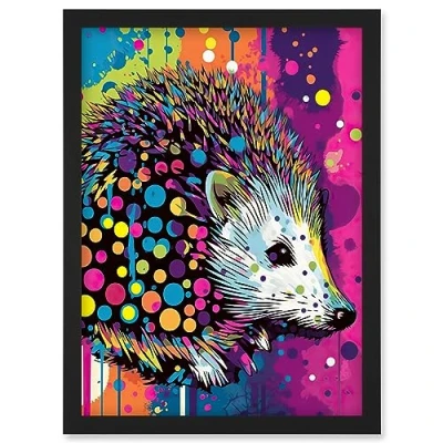 Artery8 Hedgehog Acrylic Painting Vibrant Psychedelic Polka Dot Pattern Halftone Artwork Framed Wall Art Print A4