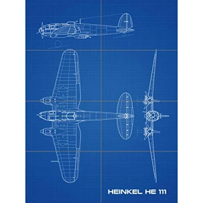 Artery8 Heinkel He 111 German Bomber Aircraft Blueprint Plan XL Giant Panel Poster (8 Sections)