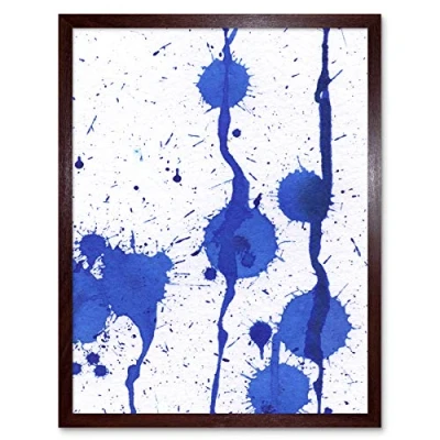 Artery8 Hendo Tanuki Abstract Blue Paint Splat Painting A Art Print Framed Poster Wall Decor 12x16 inch