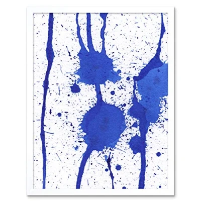 Artery8 Hendo Tanuki Abstract Blue Paint Splat Painting B Art Print Framed Poster Wall Decor 12x16 inch