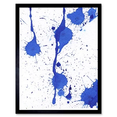 Artery8 Hendo Tanuki Abstract Blue Paint Splat Painting D Art Print Framed Poster Wall Decor 12x16 inch
