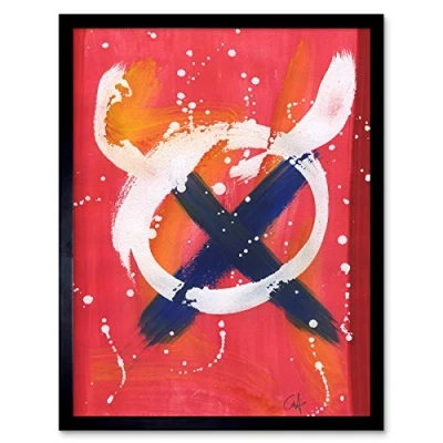 Artery8 Hendo Tanuki Abstract Painting Ox Circle Cross Art Print Framed Poster Wall Decor 12x16 inch