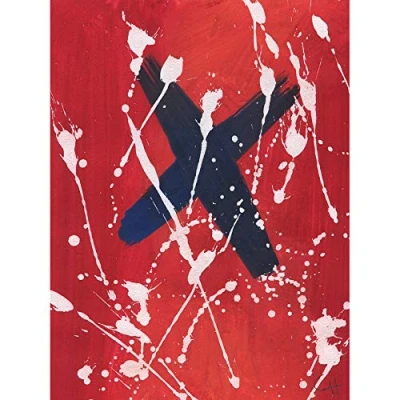 Artery8 Hendo Tanuki Abstract Red Painting Cross Paint Splat D Art Print Canvas Premium Wall Decor Poster Mural