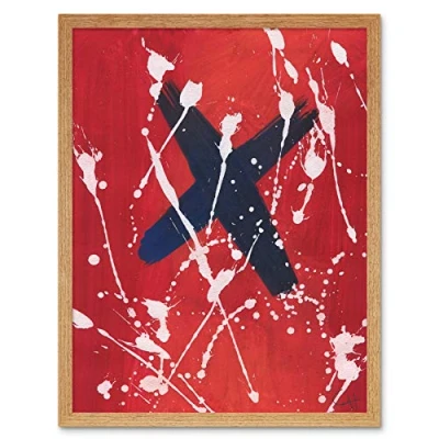 Artery8 Hendo Tanuki Abstract Red Painting Cross Paint Splat D Art Print Framed Poster Wall Decor 12x16 inch