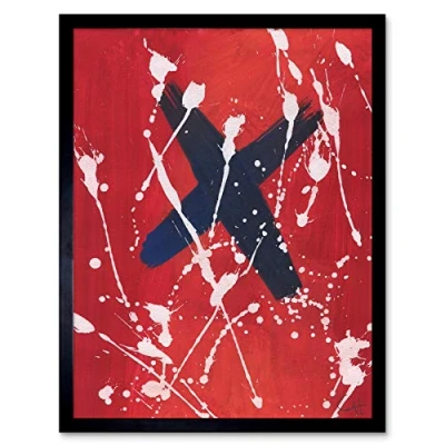 Artery8 Hendo Tanuki Abstract Red Painting Cross Paint Splat D Art Print Framed Poster Wall Decor 12x16 inch