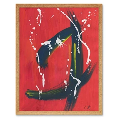 Artery8 Hendo Tanuki Abstract Red Painting Drips Strokes Art Print Framed Poster Wall Decor 12x16 inch