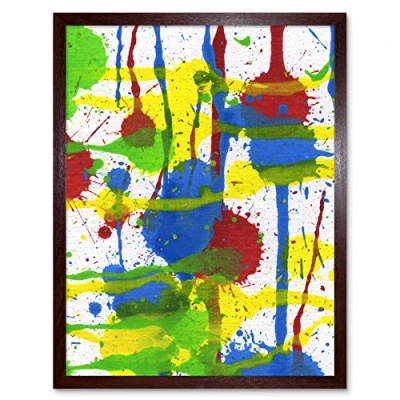 Artery8 Hendo Tanuki Bright Colourful Abstract Drip Painting C Art Print Framed Poster Wall Decor 12x16 inch