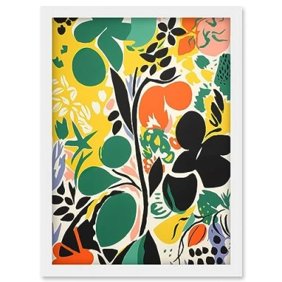 Artery8 Henri Matisse Inspired Botanical Garden Acrylic Painting Abstract Bright Shapes Artwork Framed Wall Art Print A4