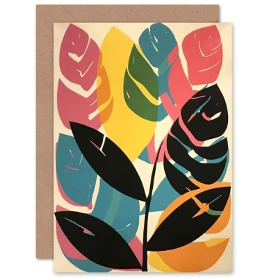 Artery8 Henri Matisse Style Leaves Boho for Wife Her Mum Sister Daughter Mom Gran Nan Birthday Thank You Congratulations Blank Art Greeting Card