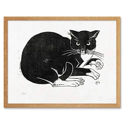 Artery8 Henri Van Der Stok Cat Claws Illustration Art Print Framed Poster Wall Decor 12x16 inch
