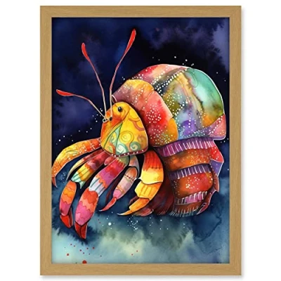 Artery8 Hermit Crab Vibrant Folk Art Watercolour Painting Artwork Framed A3 Wall Print