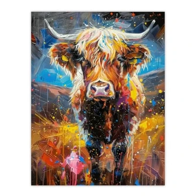 Artery8 Highland Cow Scottish Hairy Coo Paint Splat For Living Room Large Wall Art Poster Print Thick Paper 18X24 Inch