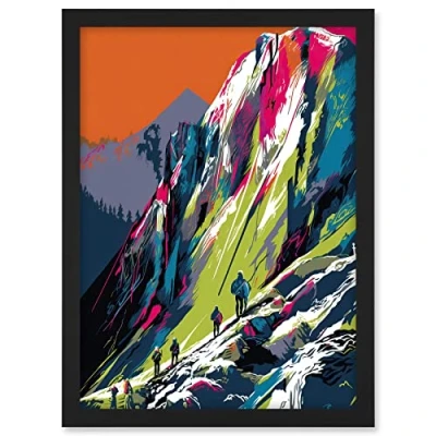 Artery8 Hikers on Helvellyn Mountain Ridge Landscape Artwork Framed A3 Wall Art Print