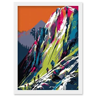 Artery8 Hikers on Helvellyn Mountain Ridge Landscape Artwork Framed Wall Art Print A4