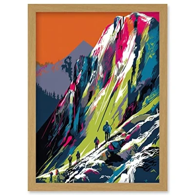 Artery8 Hikers on Helvellyn Mountain Ridge Landscape Artwork Framed Wall Art Print A4