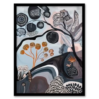 Artery8 Hillside Tree Pattern Country Folk Art Landscape Living Room Artwork Framed Wall Print A4