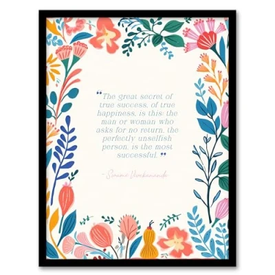 Artery8 Hinduism True Success Swami Vivekananda Veda Hindu Faith Gods Inspirational Quote Floral Artwork Framed Wall Art Print A4