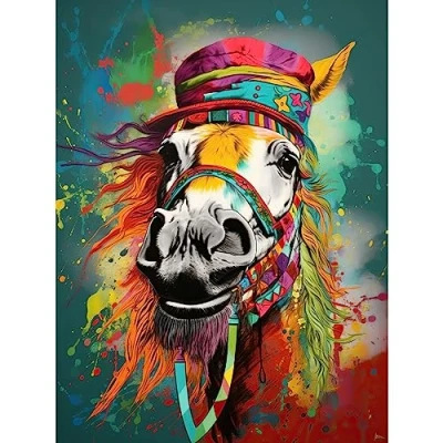 Artery8 Hippie Horse with Multicoloured Hat and Bridles Large Wall Art Poster Print Thick Paper 18X24 Inch