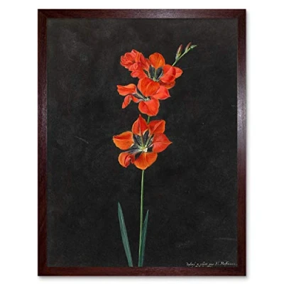Artery8 Hoffmann Lily Red Flowers Nature Painting Art Print Framed Poster Wall Decor 12x16 inch