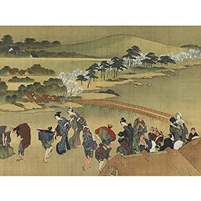 Artery8 Hokusai Cherry Blossom Viewing Art Print Canvas Premium Wall Decor Poster Mural