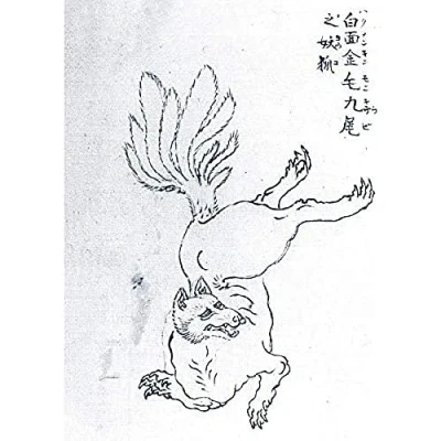 Artery8 Hokusai Nine Tailed Golden Fox Japanese Drawing Art Print Canvas Premium Wall Decor Poster Mural