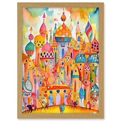 Artery8 Holi Festival Of Colours Folk Art Watercolour Painting Artwork Framed A3 Wall Print