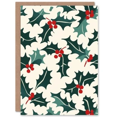 Artery8 Holly Plant Leaf Berry Festive Graphic Blank For Him Or Her Art Xmas Christmas Card