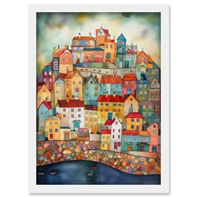 Artery8 Home By The Sea Folk Art Artwork Framed Wall Print A4