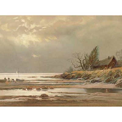 Artery8 Home Shore Nature Trees Ship Seascape Painting Unframed Wall Art Print Poster Decor Premium