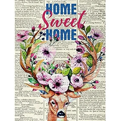 Artery8 Home Sweet Stag Upcycle Style Dictionary Art Print Canvas Premium Wall Decor Poster Mural