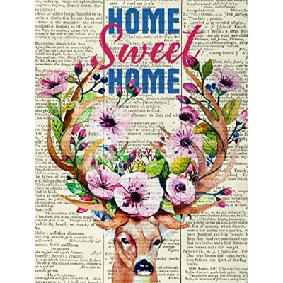 Artery8 Home Sweet Stag Upcycle Style Dictionary Premium Wall Art Canvas Print 18X24 Inch