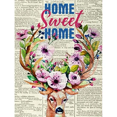 Artery8 Home Sweet Stag Upcycle Style Dictionary Unframed Wall Art Print Poster Decor Premium