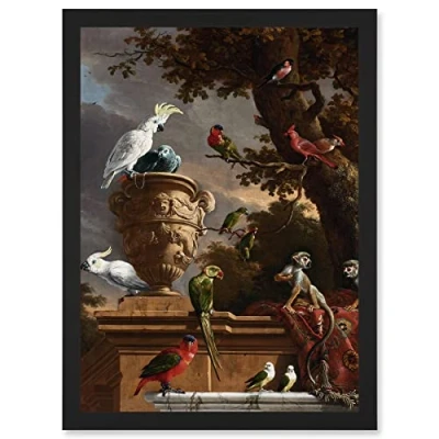 Artery8 Hondecoeter Menagerie Exotic Birds Parrots Painting Artwork Framed Wall Art Print A4