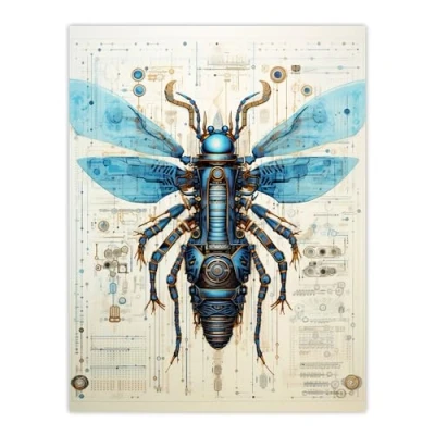 Artery8 Hornet Robot Hybrid Secret Military Schematic Blueprint Futuristic Complex Arcane Manuscript Gift For Him Man Cave Extra Large XL Wall Art Poster Print