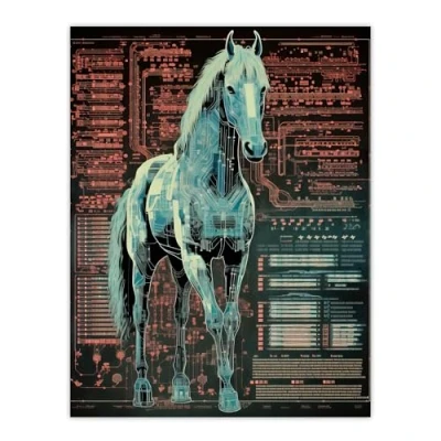 Artery8 Horse Equine Robot Hybrid Secret Military Schematic Blueprint Futuristic Complex Arcane Manuscript Gift For Him Man Cave Extra Large XL Wall Art Poster Print