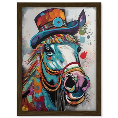 Artery8 Horse Hippie in Multicoloured Bridles and Top Hat Artwork Framed A3 Wall Art Print