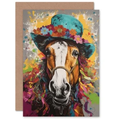 Artery8 Horse in a Hat Floral Fun for Wife Her Mum Sister Daughter Mom Gran Nan Birthday Thank You Congratulations Blank Art Greeting Card
