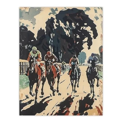 Artery8 Horse Racing Scene Modern Artwork Jockeys Bold Man Cave Fathers Day Extra Large XL Wall Art Poster Print