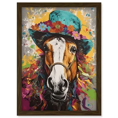 Artery8 Horse Wearing a Flower Summer Hat Multicoloured Artwork Framed A3 Wall Art Print