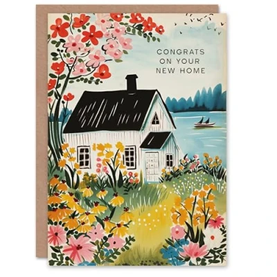 Artery8 Housewarming Card Floral New Home Congratulations Lake House For Her Gran Sister Niece Daughter Wife Woman Greeting