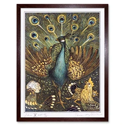 Artery8 Hoytema Peacock Chickens Birds Drawing Art Print Framed Poster Wall Decor 12x16 inch