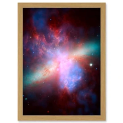 Artery8 Hubble Space Telescope Image M82 Galaxy Collaboration Chandra And Spitzer X Ray Observatory Blue Red Orange Green Starburst Dust Clouds Artwork Framed A3 Wall Art Print
