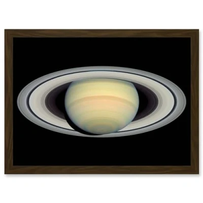 Artery8 Hubble Space Telescope Image Saturn Prior To Cassini Probe's Arrival Bright Full Planet And Ring Plane Artwork Framed A3 Wall Art Print