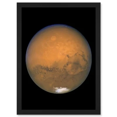 Artery8 Hubble Space Telescope Image View Mars Red Planet Olympus Mons Volcano Valles Marineris Canyons Solis Lacus Dark Marking Southern Polar Ice Cap Artwork Framed A3 Wall Art Print
