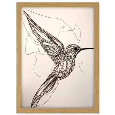 Artery8 Humming Bird in Flight Line Drawing Portrait Artwork Framed A3 Wall Art Print