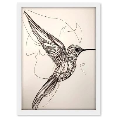 Artery8 Humming Bird in Flight Line Drawing Portrait Artwork Framed A3 Wall Art Print
